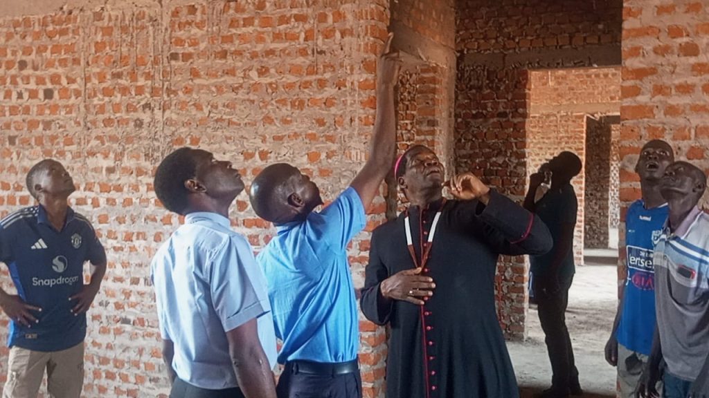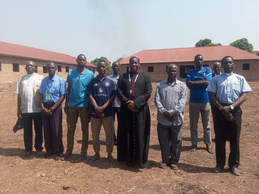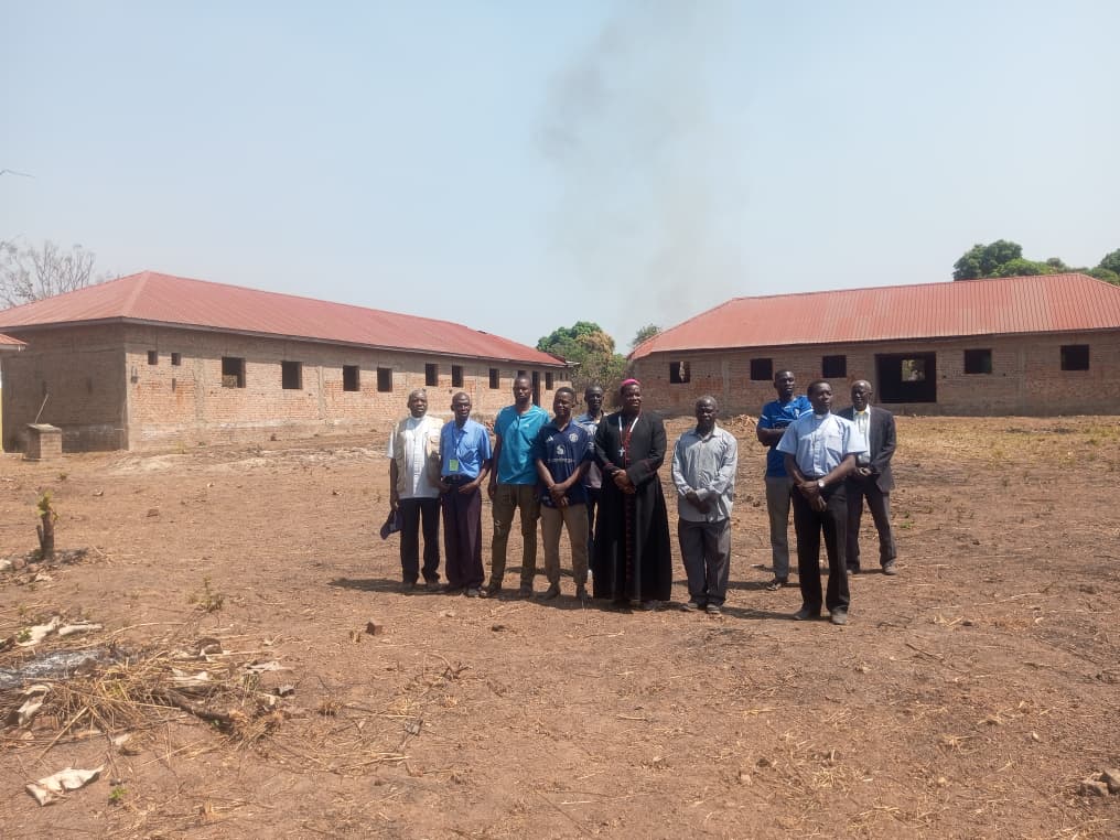 As part of ongoing monitoring efforts, Bishop Eduardo Hiiboro, accompanied by the Director of the Catholic Organization for Development and Peace (CODEP), recently paid a courtesy visit to the construction site. During the visit, the delegation inspected the ongoing works and commended the construction team for the progress achieved despite challenging conditions.