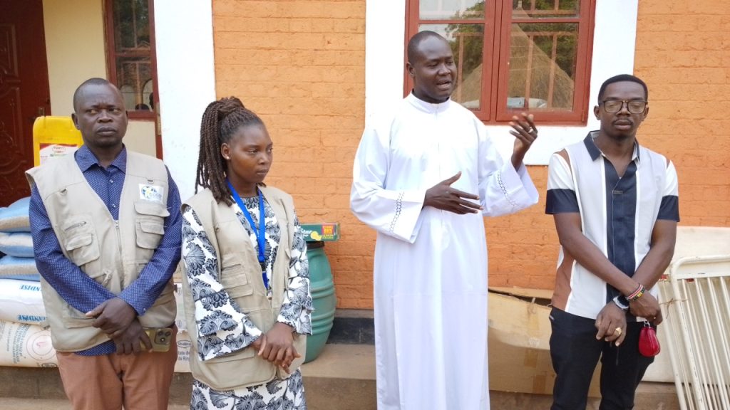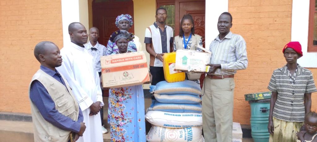 The Barracks facility received six boxes of medicine, six mattresses, two beds, three packages of beans weighing 25 kilograms each, two sacks of posho weighing 50 kilograms each, one box of soap, and one washing facility basket. Tambura Hospital received three boxes of medicine and one box of soap. The items were officially handed over on Sunday at the parish by CODEP Humanitarian Coordinator Mr. Gibson Kamilio Bakuyo and his team.